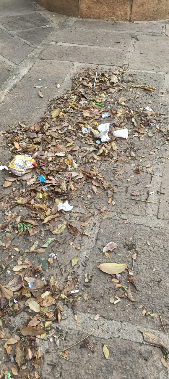 Lo primero que encuentran es lo que el día anterior y la noche dejaron. Envases de licor, gaseosas sobre las bancas de piedra, toda clase de papeles y empaques de comida que resaltan entre las hojas secas que caen de los árboles.